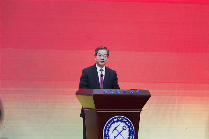 桂来保校友讲话。他强调,煤炭开采全面进入智能化时代是大势所趋,推动中国煤炭安全智能精准开采和清洁高效利用,既是贯彻落实习近平总书记重要指示批示精神的重要举措和必由之路,更是我们行业高校必须的政治担当和职责使命。进入新时代,母校各项事业蒸蒸日上,办学水平和综合实力显著提升,为煤炭行业高质量安全发展和煤炭高等教育事业作出了积极贡献。希望母校以纪念建校75周年为契机,贯彻“四为”方针,坚持“四个面向”,坚决担负起新时代赋予的历史重任,认真谋划“十四五”和2035中长期发展,紧紧抓住新一轮科技革命和产业变革的历史性机遇,向科技创新的深度和广度进军,用更多的科技创新成果推动煤炭行业安全、高质量、可持续发展,在加快推进“双一流”创建中培养担当民族复兴大任的时代新人,在贯彻落实习近平总书记“四个革命、一个合作”能源安全新战略中发挥更大的作用!他表示,国家煤矿安全监察局将一如既往地关心支持学校改革发展和“双一流”创建,为实现学校的新腾飞贡献力量!