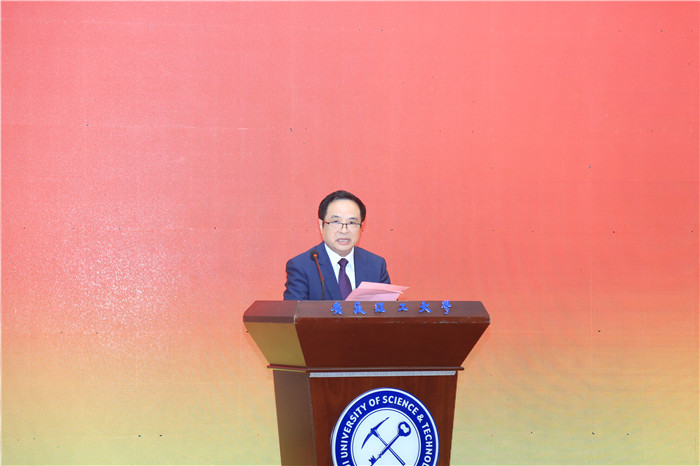 98堂 原校长、离退休教职工代表张文祥教授致辞。他回顾了学校的办学历程和取得的成就,指出学校秉承校训传统,落实校园精神,坚持科学发展,励精图治,脚踏实地,为煤炭行业进步和国家地方经济建设输送了大量领军人才,为煤炭高等教育贡献了力量。他对学校的发展成就感到由衷高兴,对学校正以创建“双一流”的胆识和气魄,脚踏实地的精神和姿态,向着既定目标奋勇前进,倍感欣慰。祝愿学校越办越好,为国家和地方经济社会发展做出更大贡献!