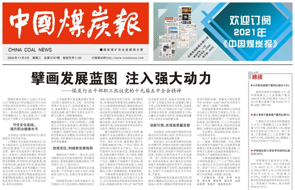 袁亮指出,在中华民族实现“强起来”的关键时期,十九届五中全会擘画了“十四五”经济社会发展宏伟蓝图,明确了2035年远景目标,发出了全面建设社会主义现代化国家的动员令,为煤炭行业站位新发展阶段、贯彻新发展理念、服务构建新发展格局提供了科学指引、注入了强大动力。