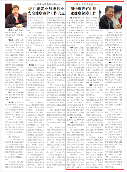问:袁院士您好!您一直为矿山健康可持续发展和职业安全健康保障奔走呼吁。这次人大会议期间,您提出了《关于加快推进矿山职业健康保障工作的建议》等5个高质量的议案建议,受到国家有关部委的高度重视。请问是什么原因促使您为矿工职业健康保障奔走呼吁?